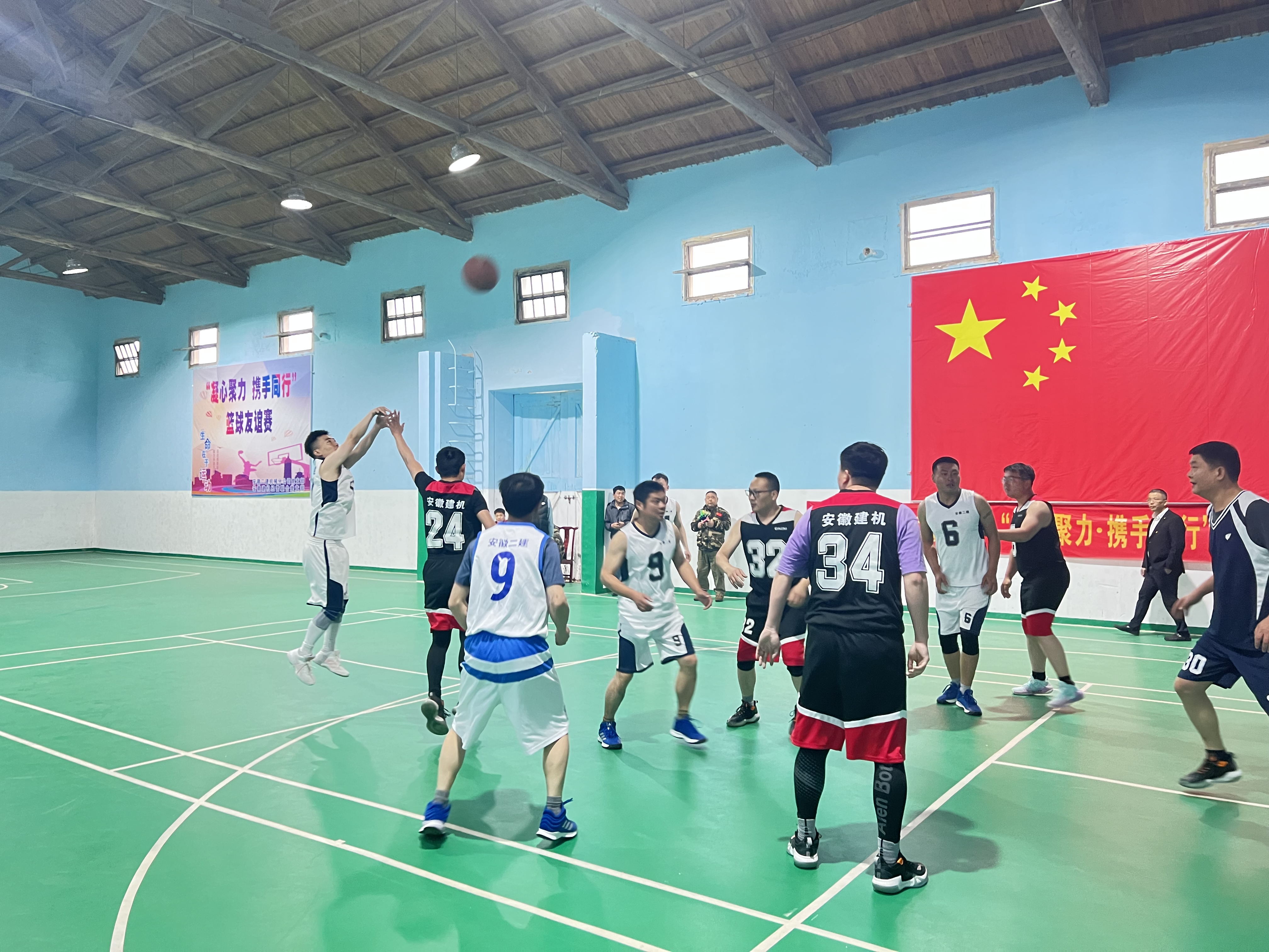 4月23日下午,安徽二建機械分公司黨支部與安徽建機經營聯合黨支部在二建機械分公司黃栗基地籃球場開展“凝心聚力?攜手同行”籃球聯誼賽。