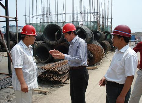 從6月8日上午開始,費總一行深入到天津分公司承建的天津陽光壹佰、天津市房地產開發公司程新道Ⅲ標段、天津市昆俞北路D塊限價商品房和唐山市玉田鳳凰春城鳳棲園等工地進行了考察。根據天津分公司匯報,天津分公司成立近三年來,已承接了天津市建委西青區南運河地塊經濟適用房Ⅱ標段13#-18#樓,建筑面積48000平方米,層高17-18層,造價6400萬元,工程基本竣工。天津市房地產開發公司程新道Ⅲ標段17#-26#樓,建筑面積43000平方米,層高14層,造價7300萬元,工程已近尾聲。天津陽光壹佰16#-23#樓,建筑面積15000平方米,層高6層,造價3000萬元,工程結構已封頂,進入內外裝飾階段。天津市昆俞北路D塊限價商品房8幢樓,建筑面積42000平方米,層高10-18層,造價7400萬元,工程4月中旬破土動工,目前8幢樓結構都已上到二層以上。天津市大港區海濱園小區3幢樓,建筑面積38000平方米,層高22層,造價7400萬元,該工程于6月10日開工。唐山玉田鳳凰春城鳳棲園4幢樓,建筑面積68000平方米,層高18-22層,造價9000多萬元,目前以5-6天一層結構的施工速度搶抓工期。到目前,天津分公司已承攬施工任務255000多平方米,工程造價4.3億元。