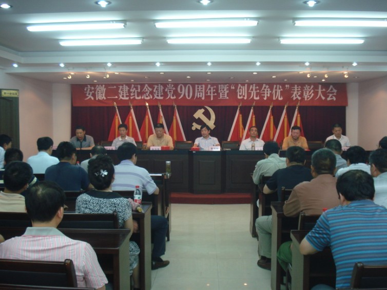 6月29日下午,安徽二建公司隆重召開慶祝建黨90周年暨“創先爭優”表彰大會。公司黨委書記朱治淮在會上作重要講話,黨委委員、工會主席李林主持會議,公司黨政領導、機關全體黨員、各基層黨員代表、受到公司黨委表彰的部分先進集體、先進個人代表共計70余人參加會議。