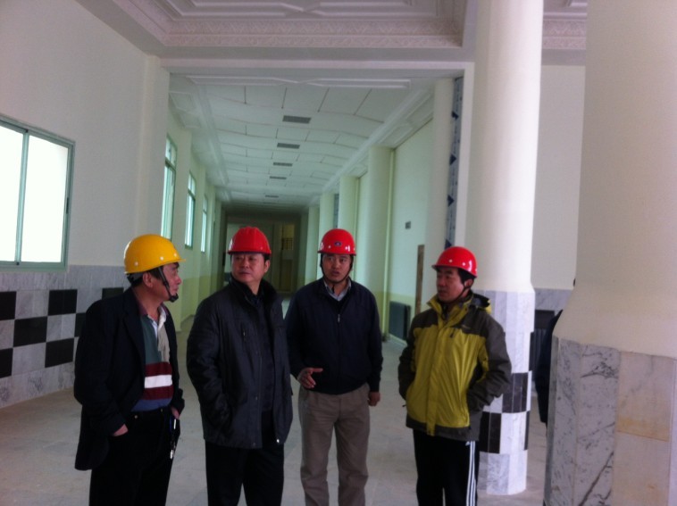 戴總先后實地查看了大學城1#建筑學院、9#學生公寓、10#學生公寓和18#學生公寓等四個項目,聽取了項目部工作匯報。戴總肯定了項目部前一階段所取得的成績,對項目部在人員配置不足,面臨重重困難的情況下完成的工作量表示了贊賞。戴總說,此行一是看望慰問項目部廣大干部職工;二是調整和充實項目部領導班子;三是落實明年4月16日竣工目標的工作安排。戴總強調,康斯坦丁大學城項目是安徽二建海外項目的關鍵工程,也是公司新的經濟增長點,公司上下對此項目非常重視。目前施工完成總量離阿國竣工要求日期日益接近,但也還存在不足,因此項目部全體職工要認清形勢,要有緊迫感和危機感,在離竣工目標只剩4個月的時間里,迅速掀起大干高潮,加快結構施工進度,狠抓工程收尾和零星附屬工程,質量要上臺階,實現工期、質量、安全、成本管理四個目標。在抓好施工的同時,還要注意加大人才培養力度,不斷優化海外項目部人力資源結構,完善人才儲備,為海外未來的發展奠定堅實的人才基礎;培養一批可靠的有實力的施工合作伙伴;進一步探索符合海外特點的項目施工管理經驗,向集團和公司交上一份滿意的答卷。
