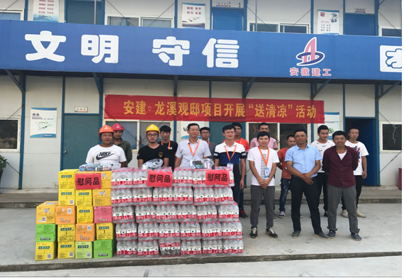 炎炎夏日高溫?zé)o情,絲絲涼意公司有愛(ài)。自7月以來(lái),氣溫持續(xù)升高,為應(yīng)對(duì)高溫酷暑天氣龍溪觀邸項(xiàng)目部積極采取有效措施,及時(shí)開展夏季“送清涼”慰問(wèn)活動(dòng),充分體現(xiàn)了項(xiàng)目部對(duì)廣大參建員工和農(nóng)民工的關(guān)愛(ài)。