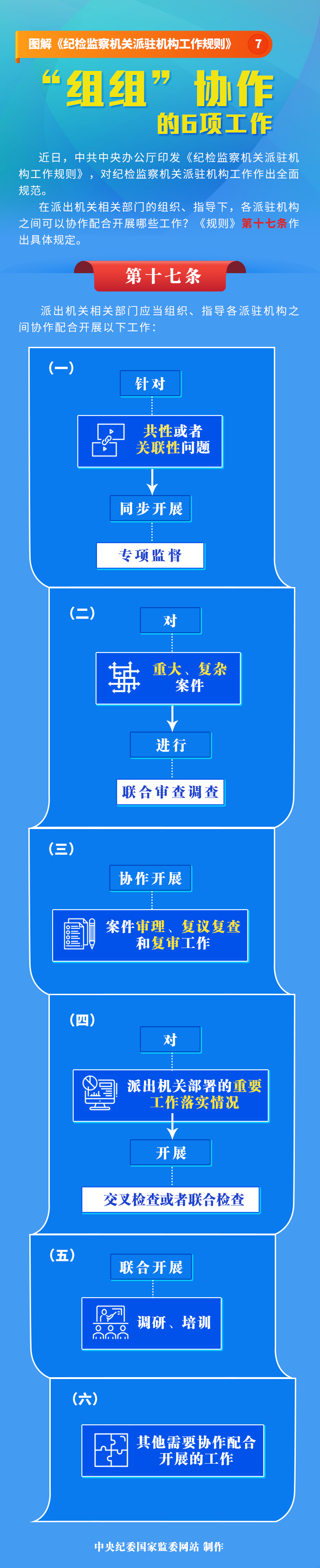 第十七條 派出機關相關部門應當組織、指導各派駐機構之間協作配合開展以下工作: